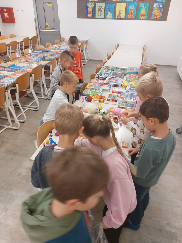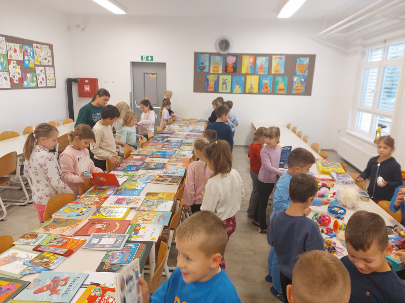 Prejšnji teden so učenci naše šole prinašali knjige in tudi igre za dobrodelno stojnico. V torek, 7. oktobra 2025, so si lahko izbrali knjigo po svojem okusu in jo odnesli domov za branje v prihodnjih tednih, oz. igro za krajšanje popoldneva.