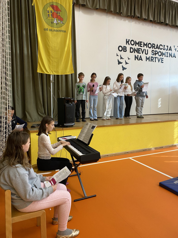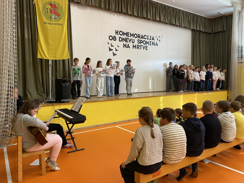 V sredo, 22. oktobra 2025, smo na šoli pripravili komemoracijo ob dnevu spomina na mrtve. Poklonili smo se žrtvam druge svetovne vojne in se posebej spomnili na štirinajst mladih fantov z območja Blagovne, ki so za svobodo domovine darovali svoja življenja.