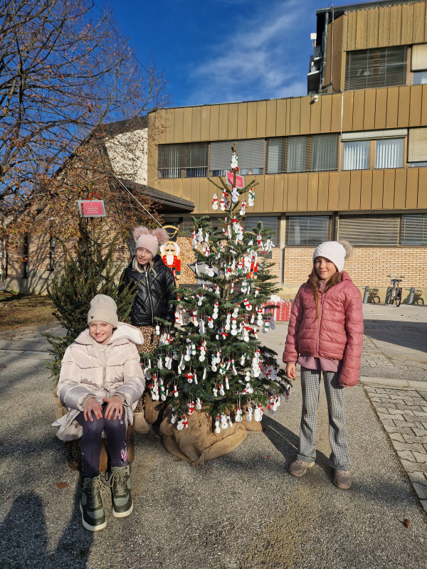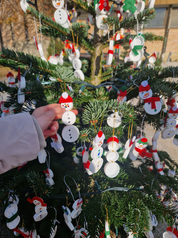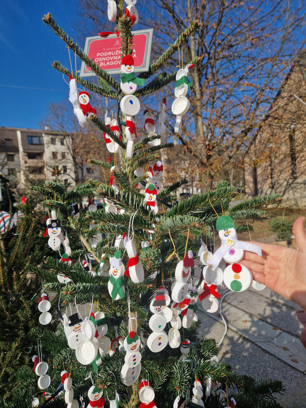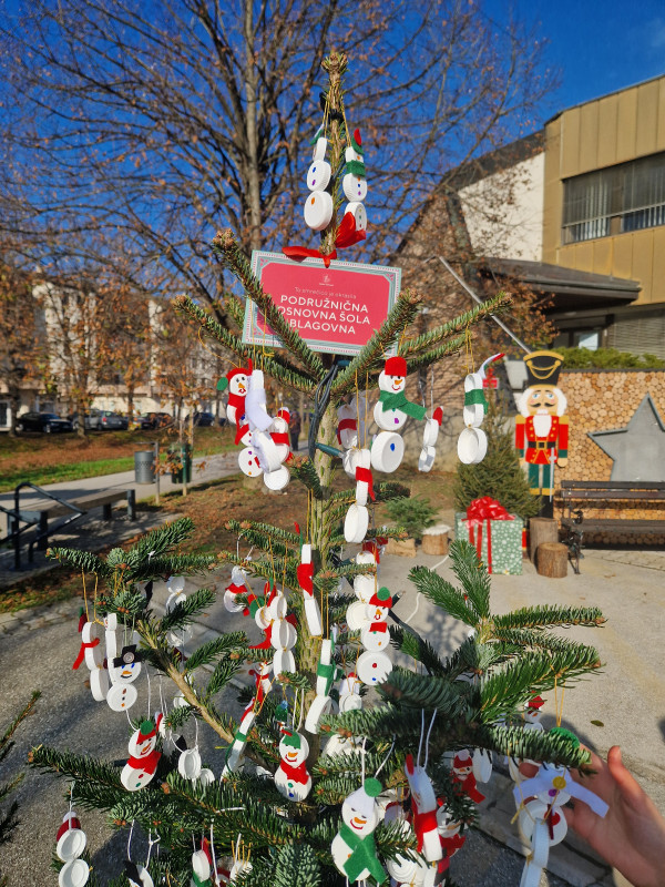 Naši snežaki že krasijo smrečico pred občino v Šentjurju. Koliko jih je? 200, 300? Vsekakor je to lep rezultat celomesečnega dela učencev naše šole. Prvošolci so narisali obraze in gumbke, učenci višjih razredov pa so snežakom dali končno podobo. Nam so zelo všeč – upamo, da bodo tudi mimoidočim.
