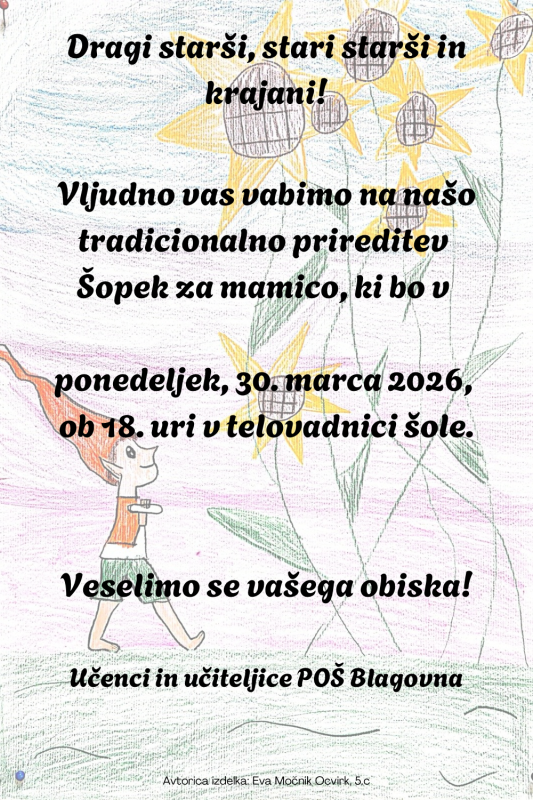 Vabilo na prireditev Šopek za mamico