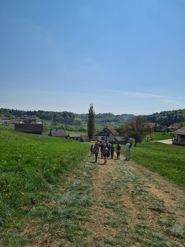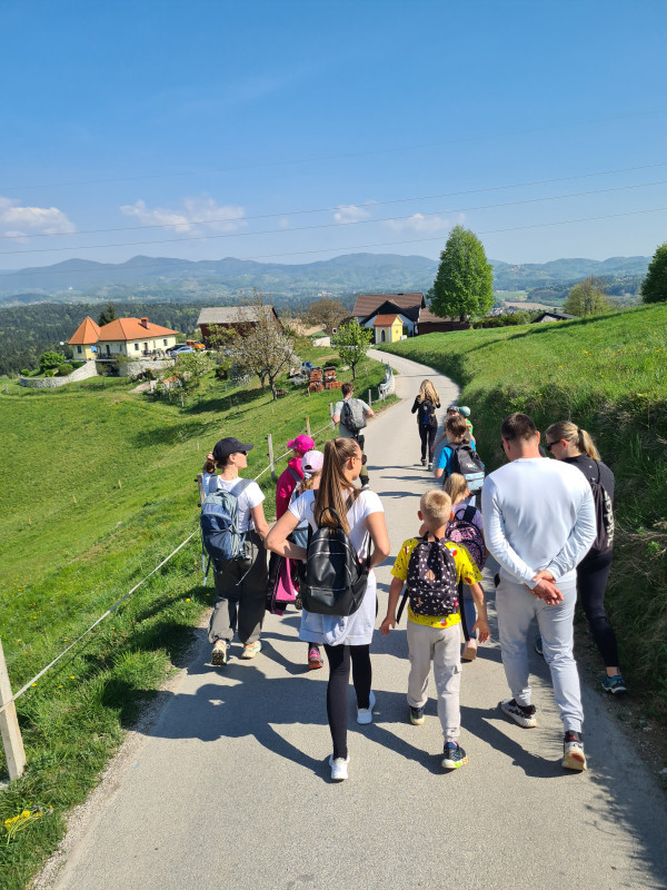 Zbrali smo se v Šentjurju in se skupaj z ostalimi pohodniki odpravili na pot. Ker nas je spremljalo čudovito sončno pomladno vreme, se je letos pohoda udeležilo tudi zelo veliko staršev. Z njimi je bila hoja še toliko prijetnejša. Med potjo smo se pogovarjali in uživali v naravi.